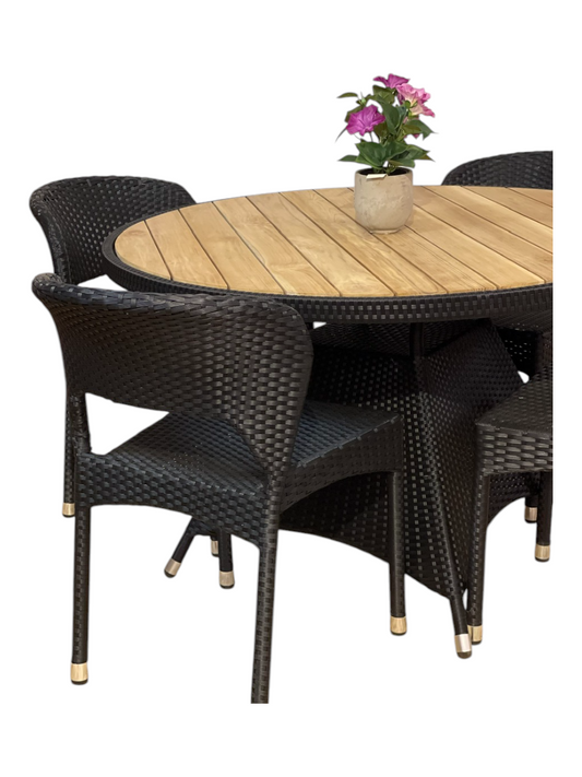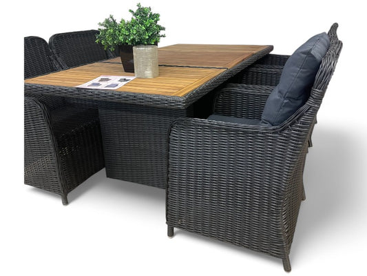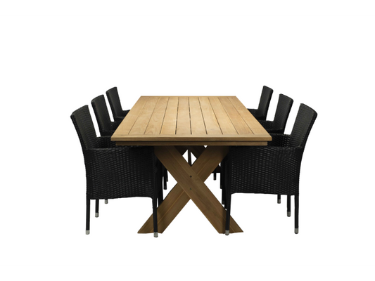 BEDFORD TEAK Havebord 200cm og 6 stabels sort havestole