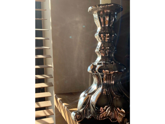 Mabella Lysestage keramik / Antik sølv Ø14x23cm