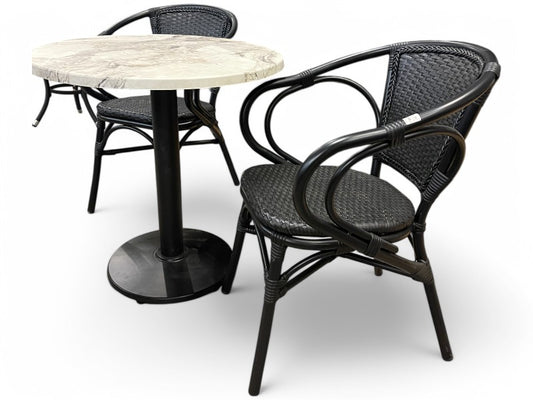 Laminat marmor struktur rundt bord og 2 Cafe stole, sort