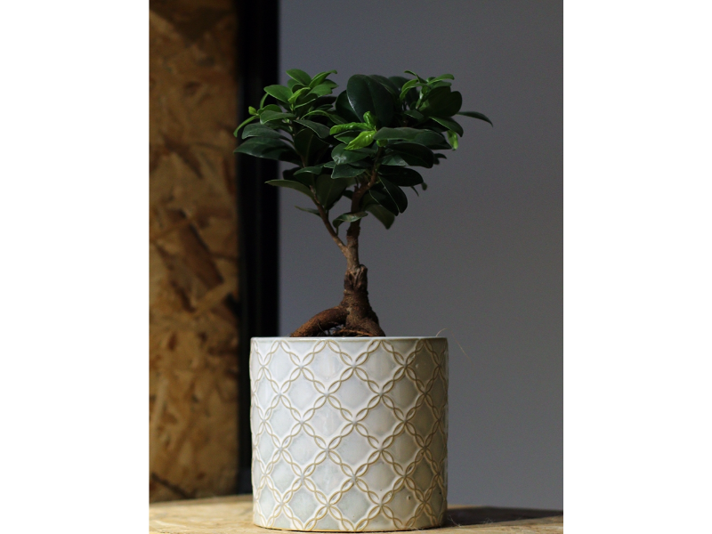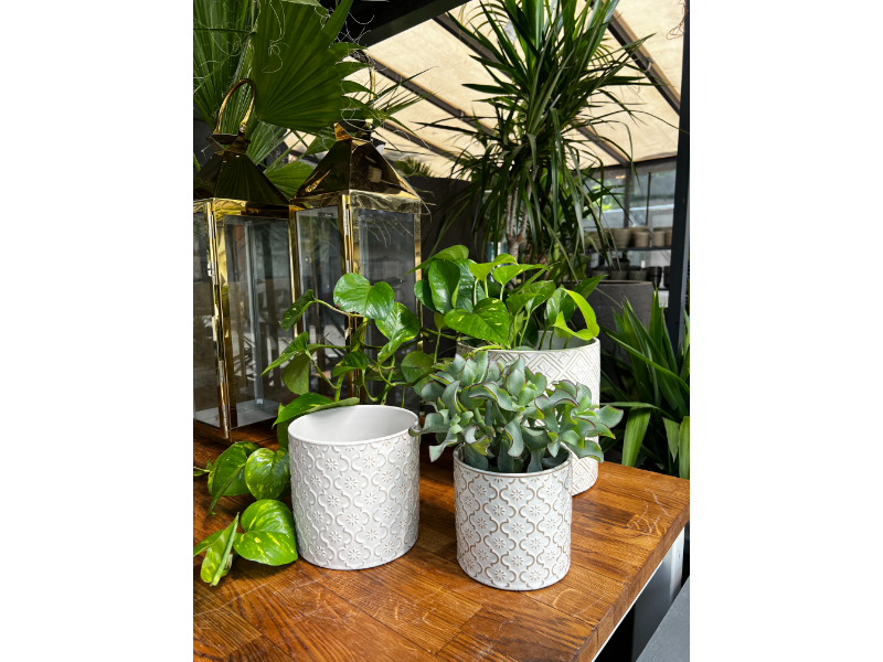 Smuk urtepotteskjuler i keramik med struktur og rolige farver fra Mabella Style. Urtepotteskjuleren går fra en mere rolig sandtone i en smuk rustik farvet glasur, som vil få dine planter til at syne af mere. Urtepotteskjuleren findes i 6 forkellige mønstre.