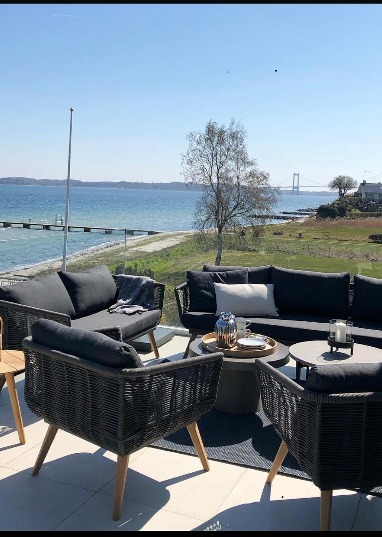 Det flotte design af sorte linjer giver et roligt udtryk i indretningen og sammen med de naturfarvede hynder, skabes der en skøn kontrast.